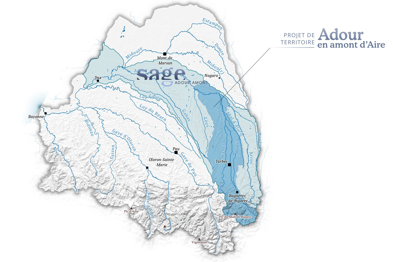 • Pourcentage des départements couverts par le bassin : Gers 22 %, Landes 55 %, Pyrénées-Atlantiques 96 %, Hautes-Pyrénées 66 %