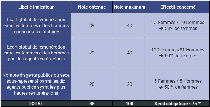 - Les écarts globaux de rémunération entre les femmes et les hommes, pour les fonctionnaires et pour les agents contractuels, calculés à partir de la moyenne de la rémunération des femmes comparée à celle des hommes à corps, grade et échelon équivalents (fonctionnaires) et à catégorie hiérarchique équivalente (contractuels) ;